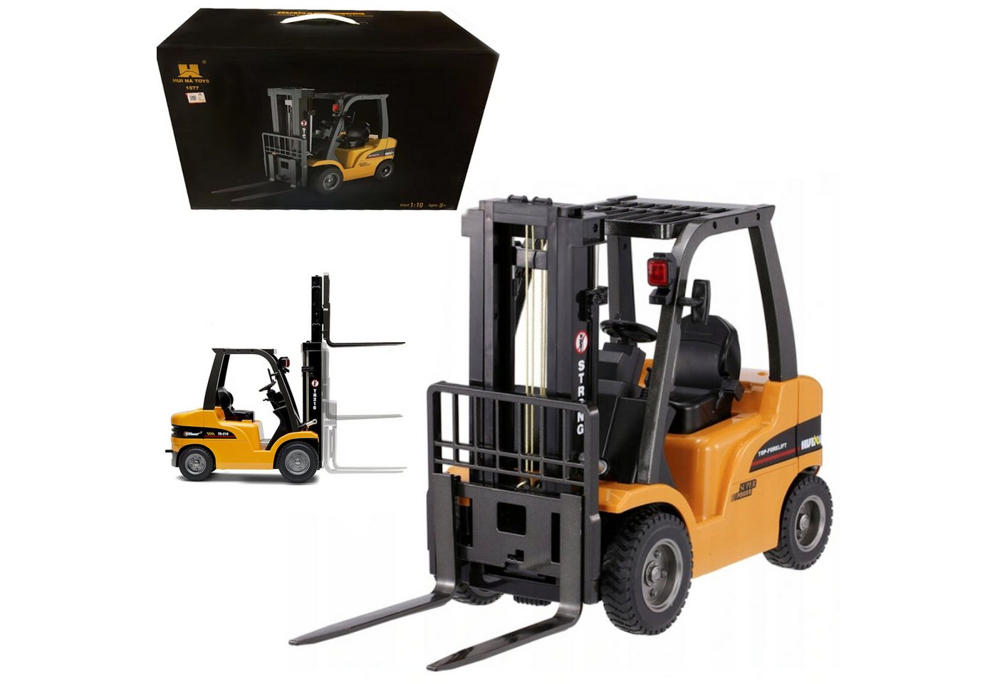 Der HUINA 1577H besticht durch sein authentisches Design, das einem echten Gabelstapler in nichts nachsteht. Jedes Detail wurde sorgfältig gestaltet, um ein möglichst realistisches Spielerlebnis zu bieten. Von den robusten Reifen bis hin zu den funktionierenden Scheinwerfern – dieser Gabelstapler ist ein Hingucker in jedem Kinderzimmer.