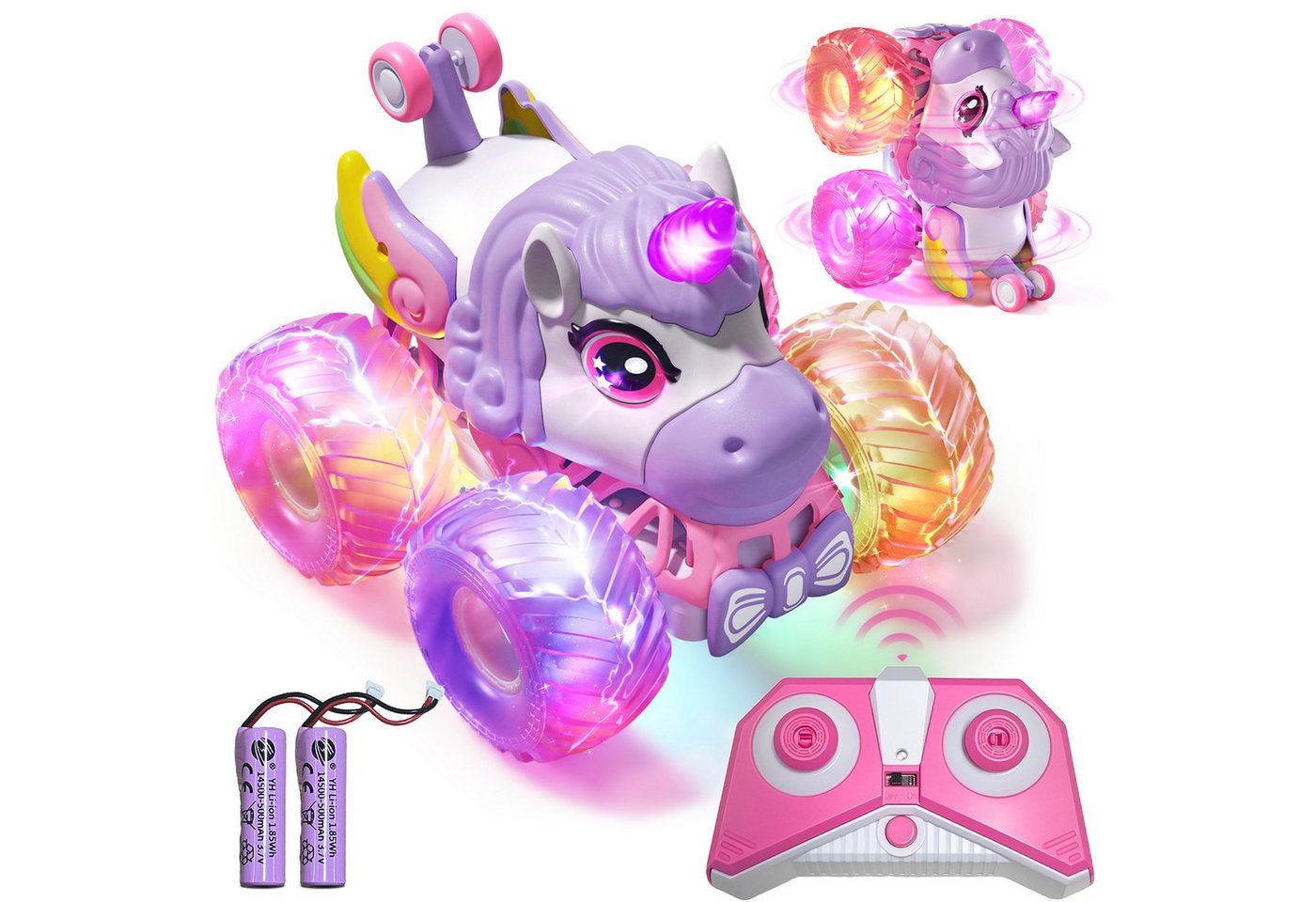 Esun RC-Auto Ferngesteuertes Auto Mädchen ab 3 4 5 Jahre, 1/20 Einhorn Monstertruck (Set, Komplettset), 2.4GHz Monster Truck mit 360°Drehung, Einhorn