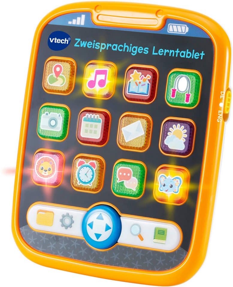 Das Tablet wurde in Zusammenarbeit mit Pädagogen entwickelt und ist auf die Bedürfnisse von Babys und Kleinkindern abgestimmt. Die Lerninhalte sind altersgerecht aufbereitet und fördern die kognitive Entwicklung, die sprachlichen Fähigkeiten und die Kreativität deines Kindes. Das Vtech® Lerntablet Baby ist ein wertvolles Lernspielzeug, das dein Kind auf spielerische Weise bei seinen ersten Lernschritten unterstützt.